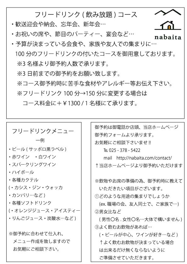 ご予約内容に合わせてお飲物の仕入れを考えておりますので、