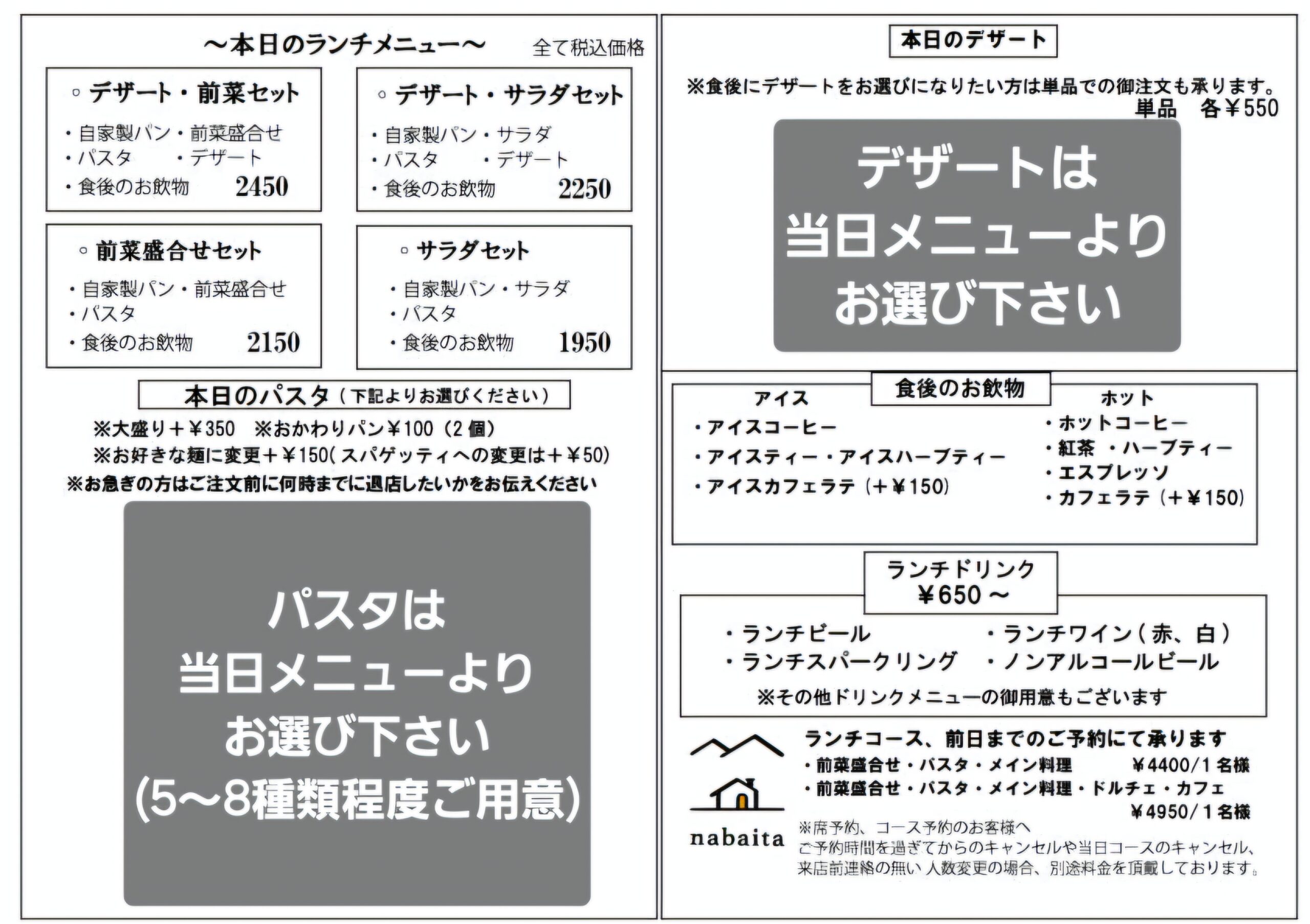 本日のデザートなど